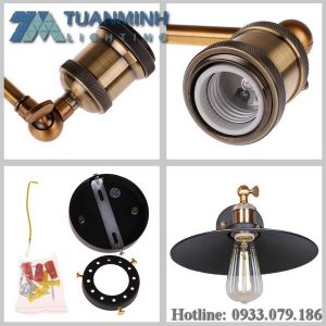 Chao đèn gắn tường sử dụng đui đồng, sắt sơn tĩnh điện tạo cái nhìn cứng cáp và sang trọng. Trong nhiều lựa chọn đèn trang trí chao đèn đui đồng vẫn đang là sản phẩm các quán cafe lựa chọn. Ngoài sản phẩm là để trang trí chao đen gắn tường còn rọi điểm các sản phẩm, chiếu trah… Sử dụng đui E27 thay thế các loại bóng tùy theo lựa chọn không gian của quán…