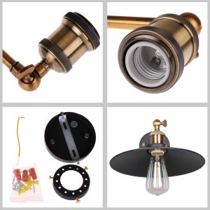 Chao đèn gắn tường sử dụng đui đồng, sắt sơn tĩnh điện tạo cái nhìn cứng cáp và sang trọng. Trong nhiều lựa chọn đèn trang trí chao đèn đui đồng vẫn đang là sản phẩm các quán cafe lựa chọn. Ngoài sản phẩm là để trang trí chao đen gắn tường còn rọi điểm các sản phẩm, chiếu trah… Sử dụng đui E27 thay thế các loại bóng tùy theo lựa chọn không gian của quán…