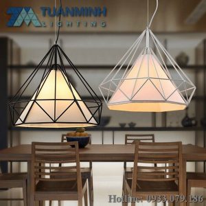 Đèn chao thả kim cương lổng vải lắp đặt dễ dàng trên trần thạch cao, bê tông.Đèn sử dụng đui E27 thông dụng quý khách lựa chọn công suất đèn và ánh sáng phù hợp với không gian sử dụng. Được sử dụng nhiều thả trang trí bàn ăn, quán cafe, showroom, quầy bar..’