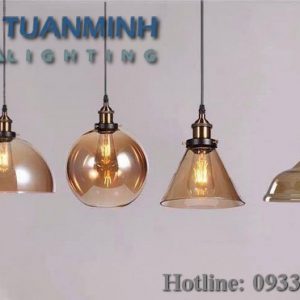 Đèn chao thả thủy tinh, đèn thả trang trí thủy tinh cao cấp màu hổ phách