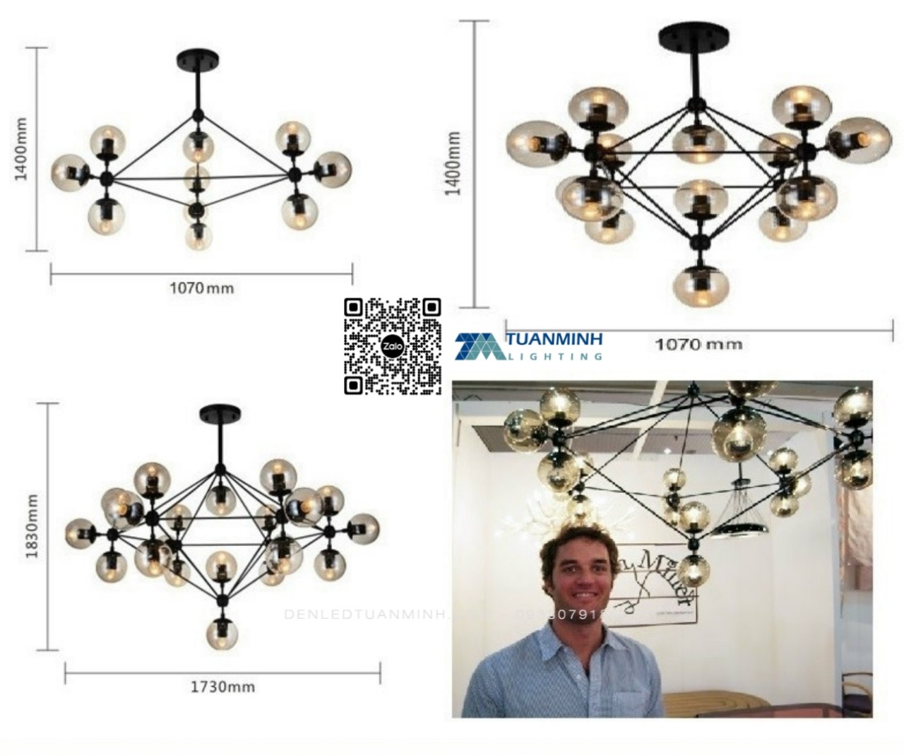 Đèn thả chùm hiện đại Đậu Thần, Đèn phân tử 10 bóng, 15 bóng, 21 bóng.
