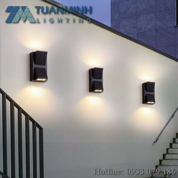 Đèn gắn tường ngoài trời hiện đại chữ nhật vát hắt hai đầu ip65