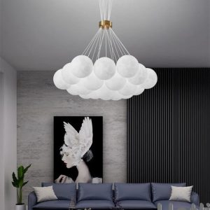 Thiết kế đơn giản từ chất liệu nhựa Acrylic tạo cảm giác như bạn đang nhìn vào mặt trăng. Đèn thả chùm bóng bay tạo không gian lạ mà quen thuộc. Đui E27 sử dụng các loại bóng thông dụng và ánh sáng lựa chọn tiện lợi phù hợp các loại trần cho không gian gia đình.