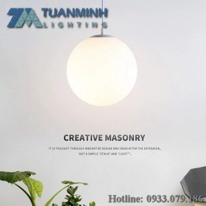 Đèn thả thủy tinh trắng tròn, Đèn trang trí thủy tinh trắng đục TT-220