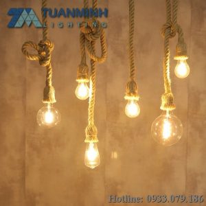 Một thiết kế cực kỳ độc đáo đến từ Đèn Led Tuấn Minh. Sự tỉ mỉ khi cuốn từng sợi thừng liên kết với nha. Sử dụng đui E27 chuyên dụng cho bóng trên thị trường hiện nay. Sản phẩm được sử dụng trang trí quán cafe, quầy bar..