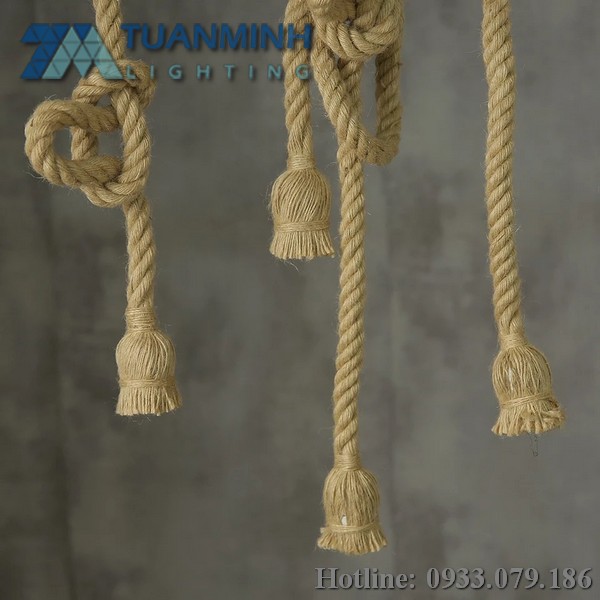 Một thiết kế cực kỳ độc đáo đến từ Đèn Led Tuấn Minh. Sự tỉ mỉ khi cuốn từng sợi thừng liên kết với nha. Sử dụng đui E27 chuyên dụng cho bóng trên thị trường hiện nay. Sản phẩm được sử dụng trang trí quán cafe, quầy bar..
