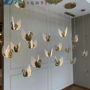 Sản phẩm là sự kết hợp giữa hợp kim mạ, và pha lê K9 tạo lên hình con chim thiên nga tung cánh giữa không gian ngôi nhà. Một ý tưởng thiết kế độc cho những người yêu chim, quý chim nhất là chim thiên nga.