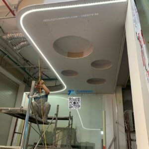 Thi công lắp đặt âm không thấy viền, mặt silicol dẻo tán quang uốn cong các góc nhỏ giải pháp mềm mại cho các đơn vị thiết kế thi công.
